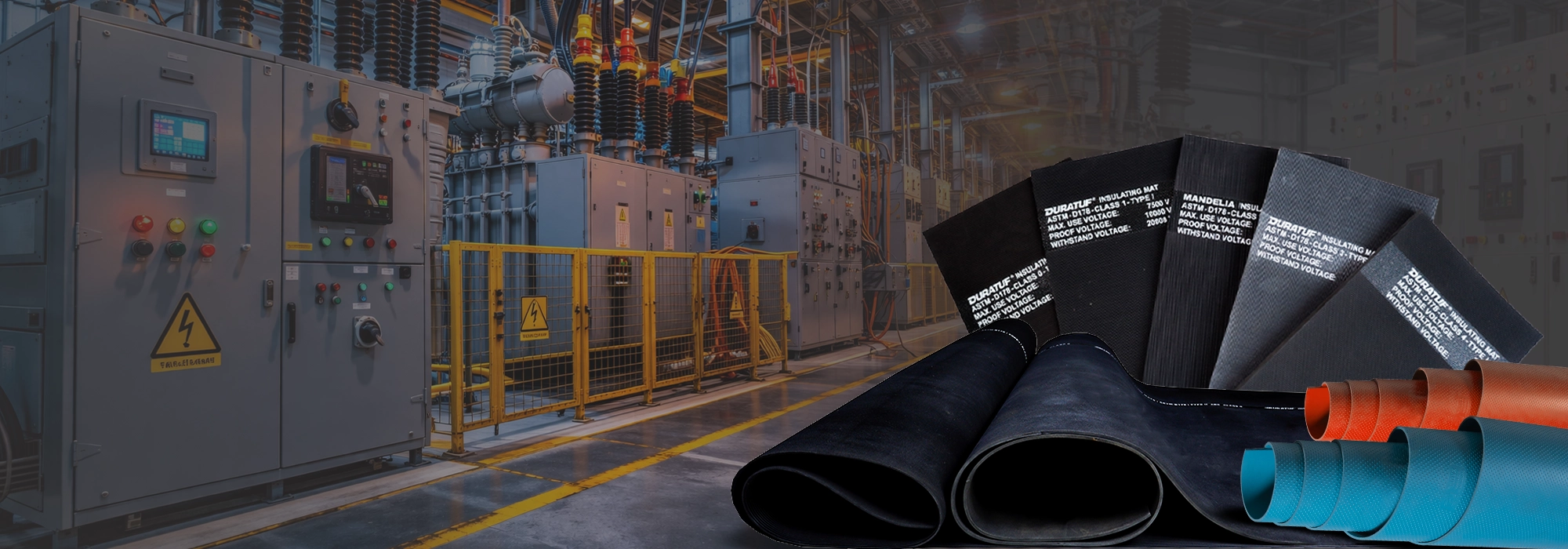 - Electrical switchrooms and control panels: Insulates operators working near live panels, switchgear & circuit breakers and reduces exposure to arc flash and shock.