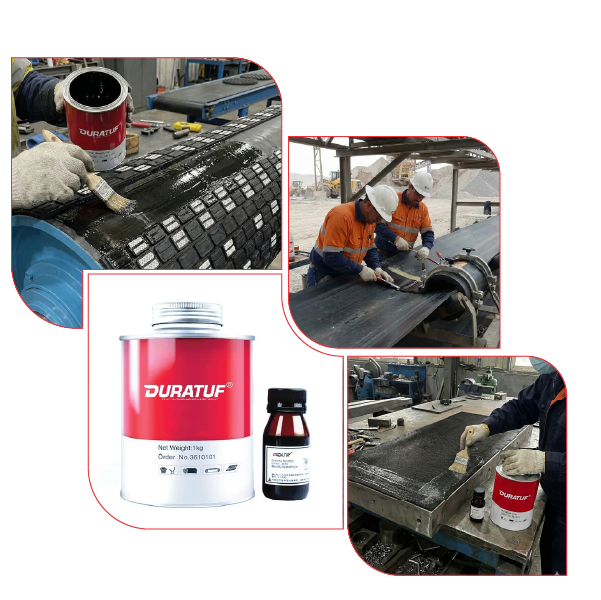 Duratuf cold bonding adhesive, also known as cold glue or cold adhesives, is used to stick conveyor belt covers together at room temperature without applying heat. They are suitable for on-site rubber sheet or conveyor cover repairing tasks without any specialized equipment.